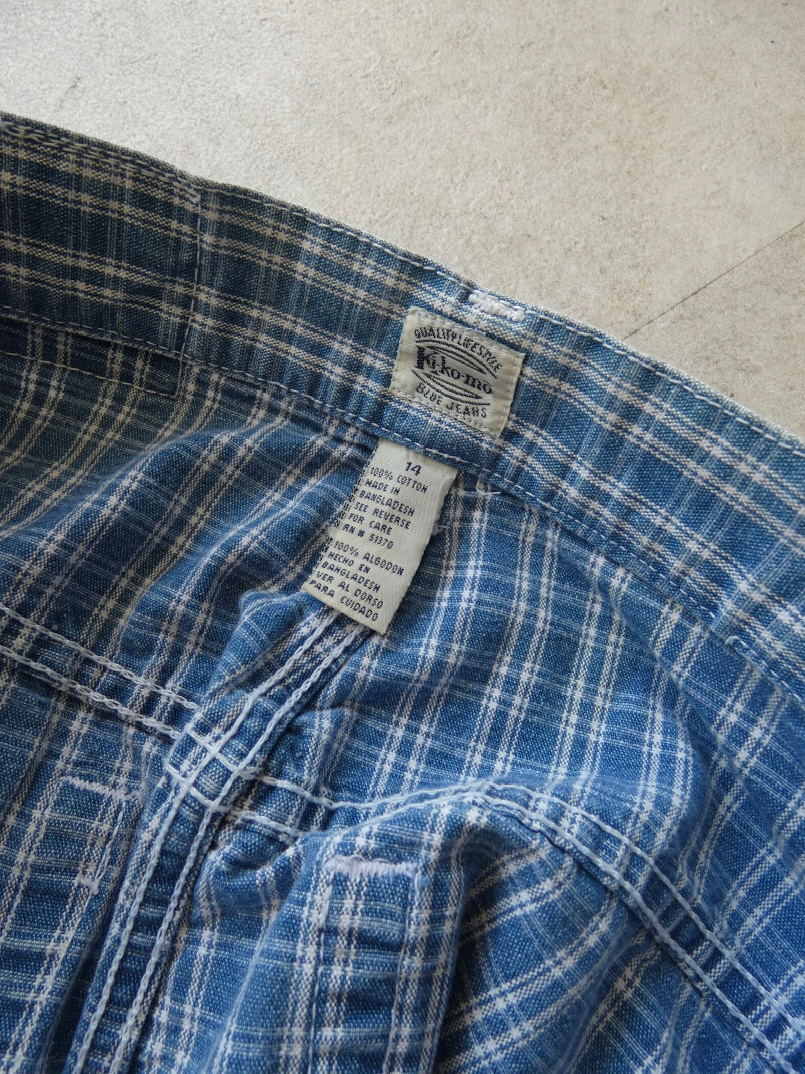 鮮やかなブルーとホワイトのチェックショーツ。