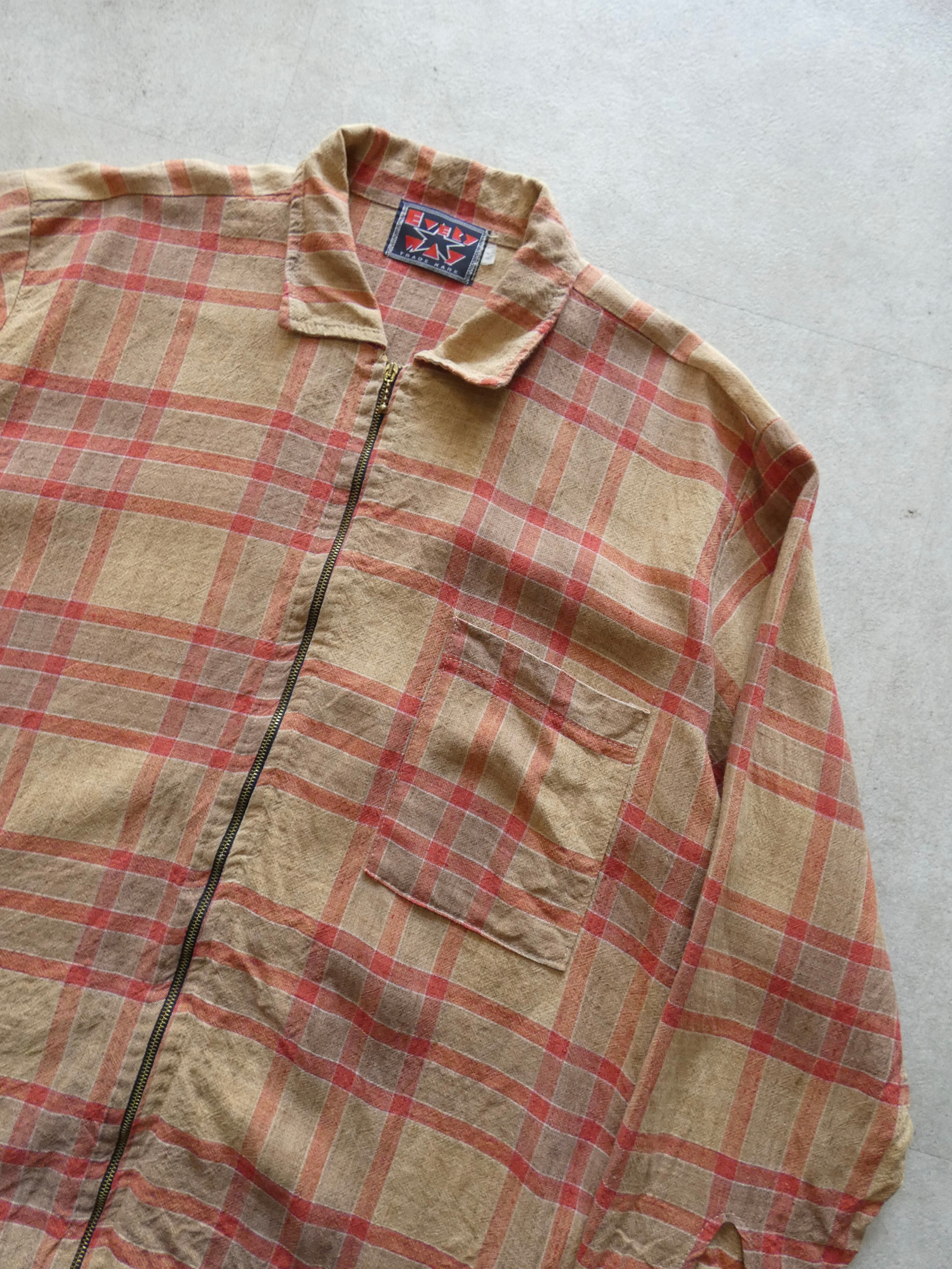 Check zip up shirt