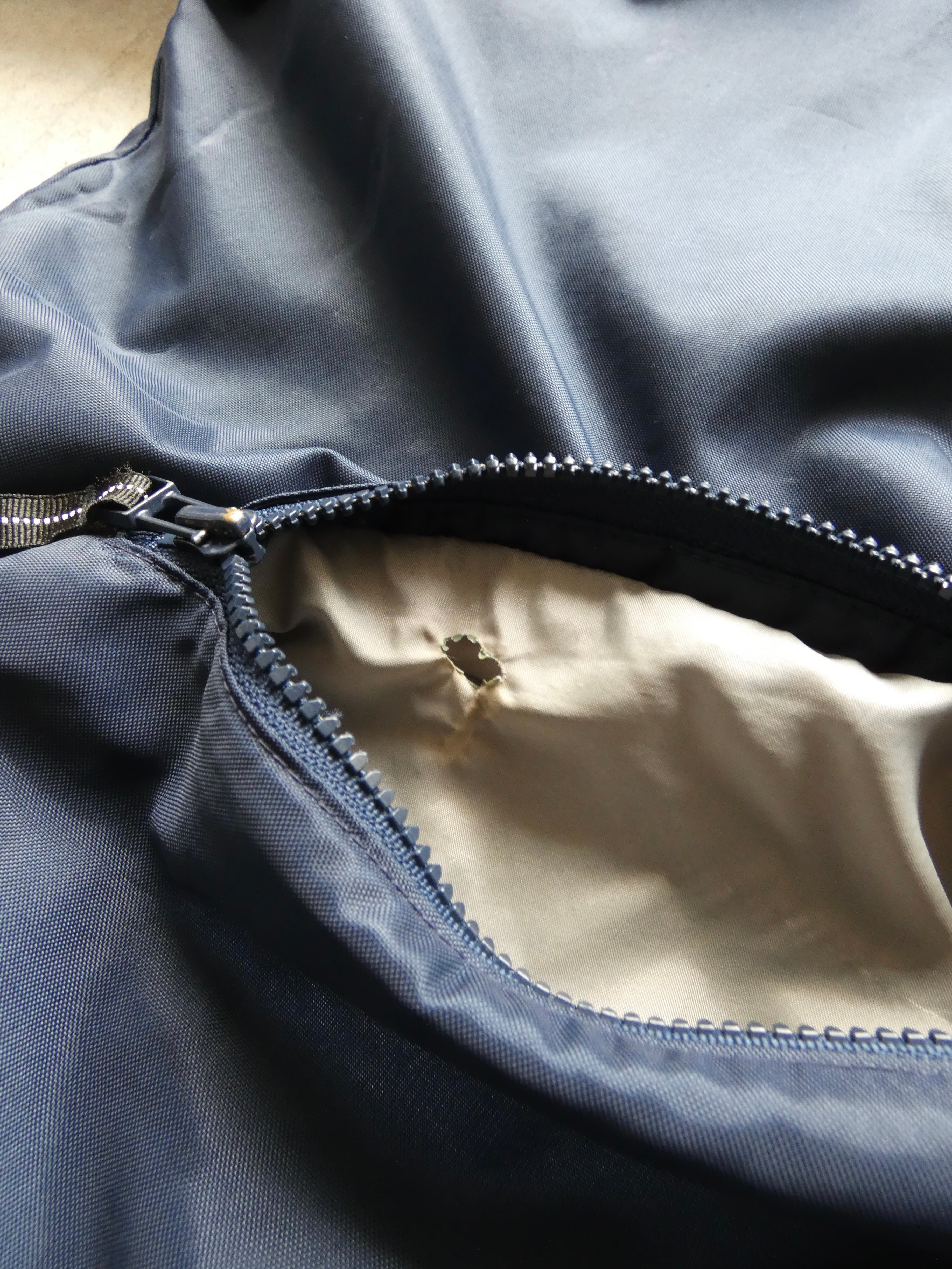 右ポケット内穴有。