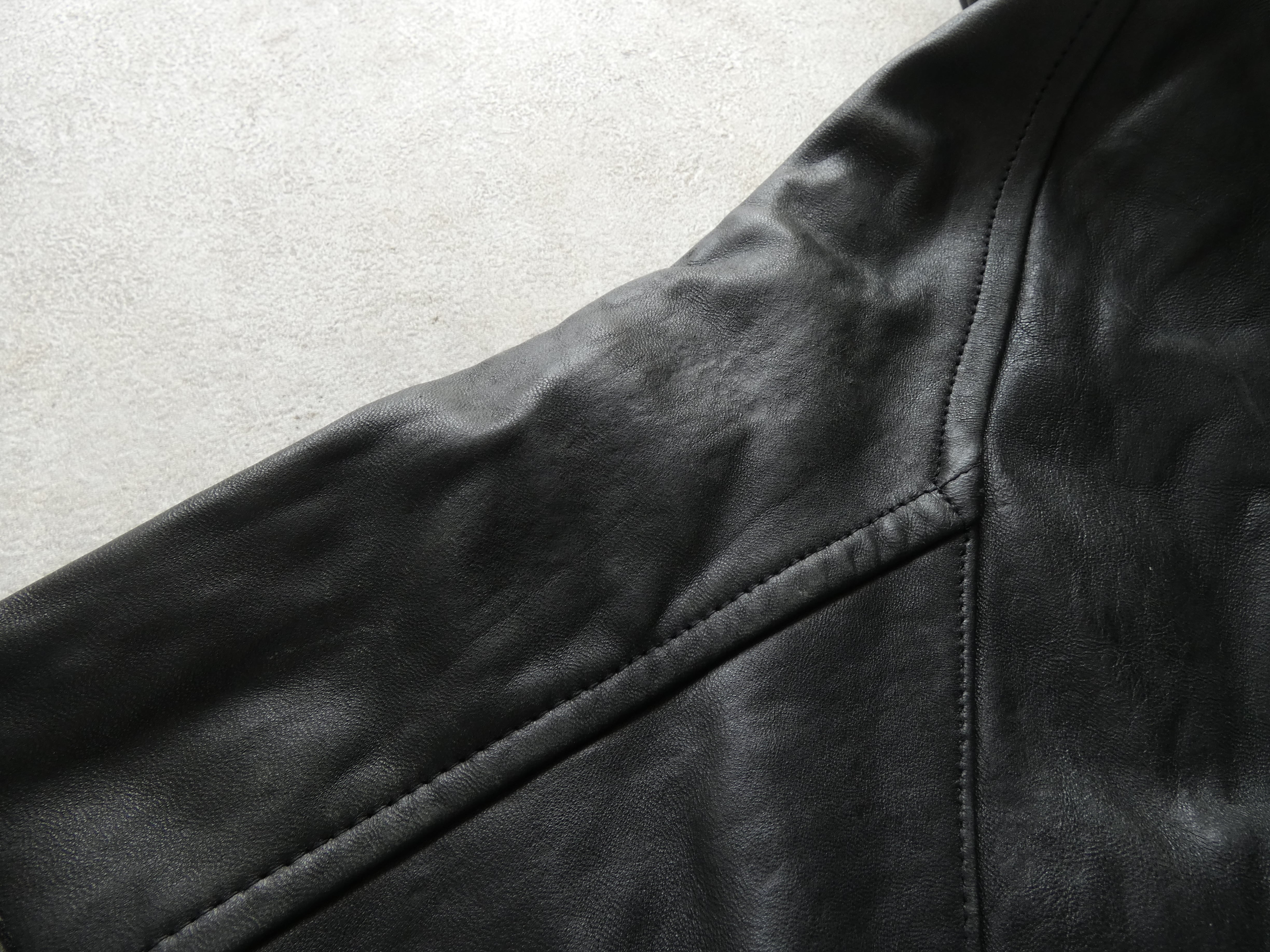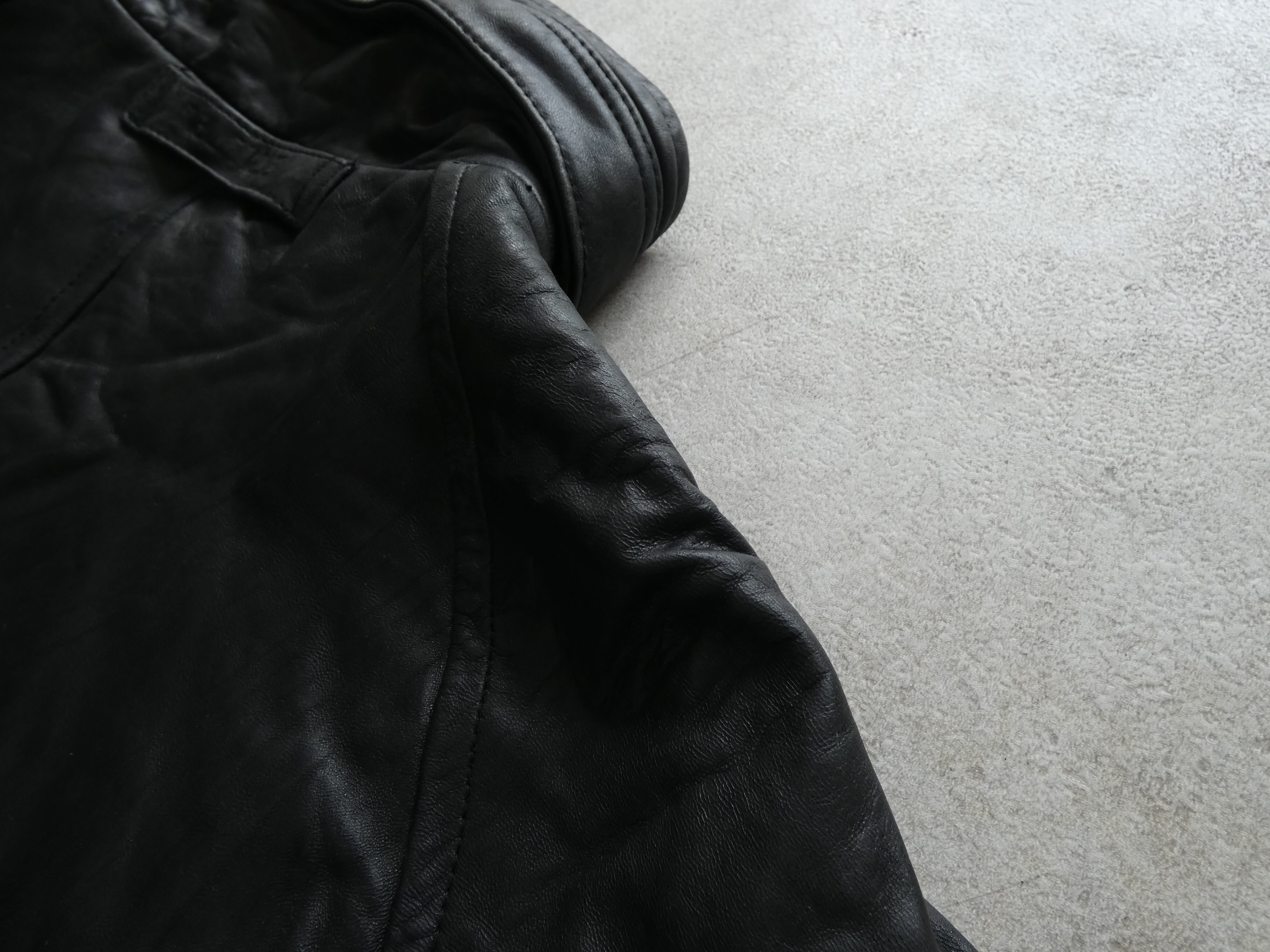 しっかりとリアルレザーなので重みがあり、着るだけでサマになるレザーアウター❣️